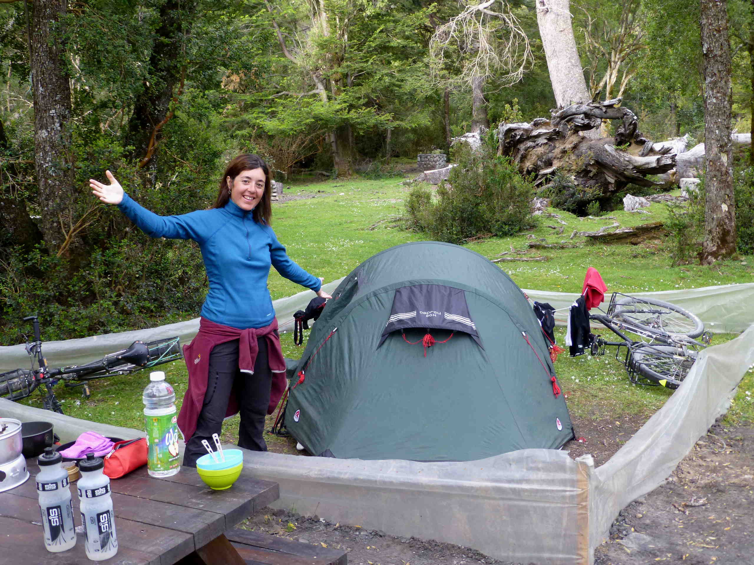 Si uno pudiera olvidarse de las ordas de turistas, las instalaciones mediocres y el coste…, Torres del Paine es un lugar fantástico. En gran contraposición a su parque homólogo argentino, aquí se paga (y mucho) por todo. El Chaltén nos pareció más auténtico, con campamentos básicos pero más que suficientes para descansar y afrontar los días siguientes de caminata. En Torres del Paine resultaba muy sorprendente encontrarse de pronto con un resort de lujo, con servicio de restaurante, hotel, guía, caballos, porteadores, e incluso reserva de lugar para plantar tu tienda (!!!) en medio del campo patagónico. Aún usando la opción más económica (cargar nuestra tienda y comida y acampar en los campamentos obligatorios “sin extras”), 5 días de excursión nos costó unos 400 $ en entradas y cuotas de todo tipo (versus 0 $ en Argentina!!). Resultaron 5 días de buenas excursiones con la mochila acuestas lo cual, para nuestras piernas ciclistas, no eran tan fácil! Menos mal que los días en El Chaltén nos sirvieron de entrenamiento para lo que se nos venía!