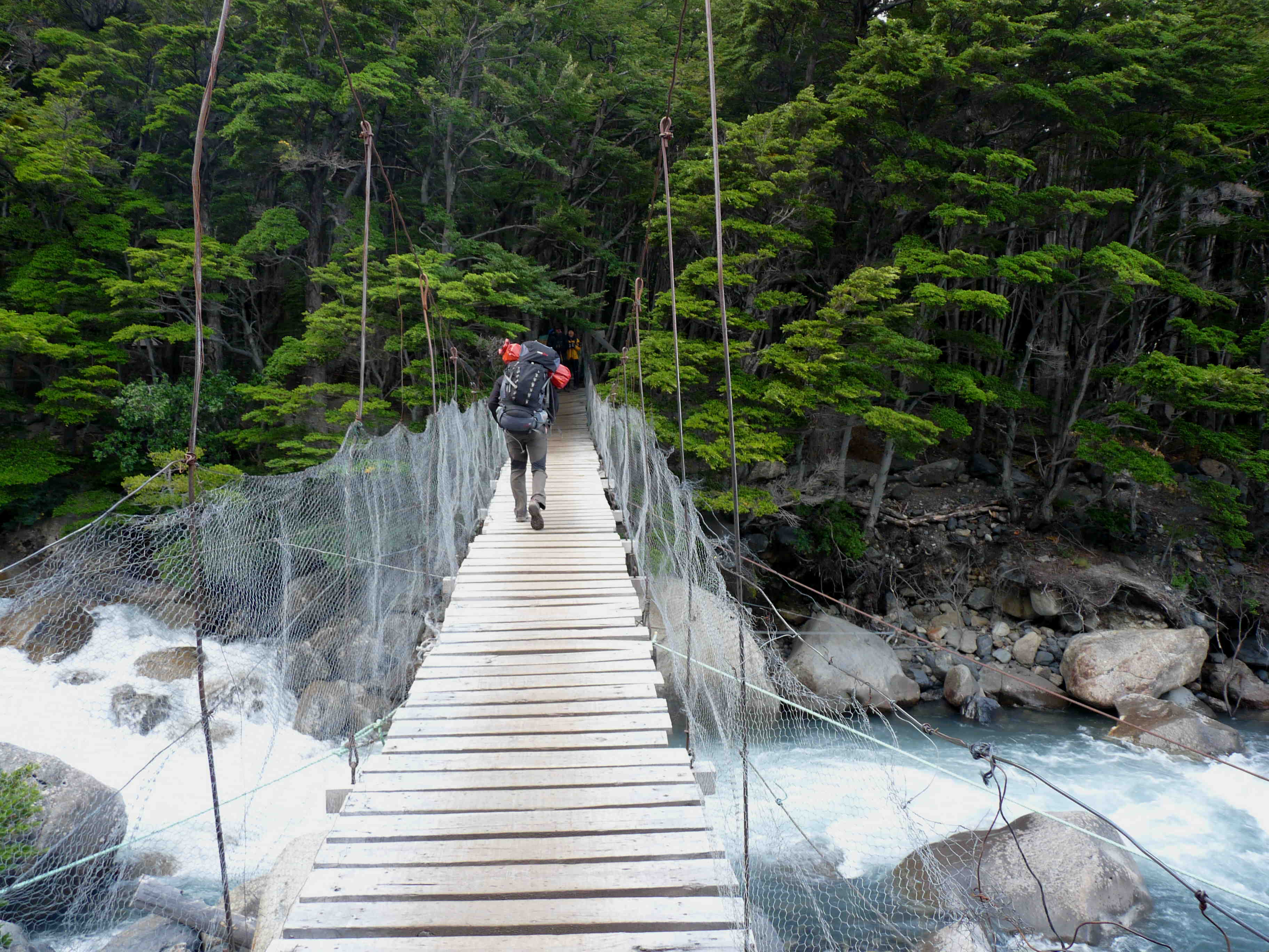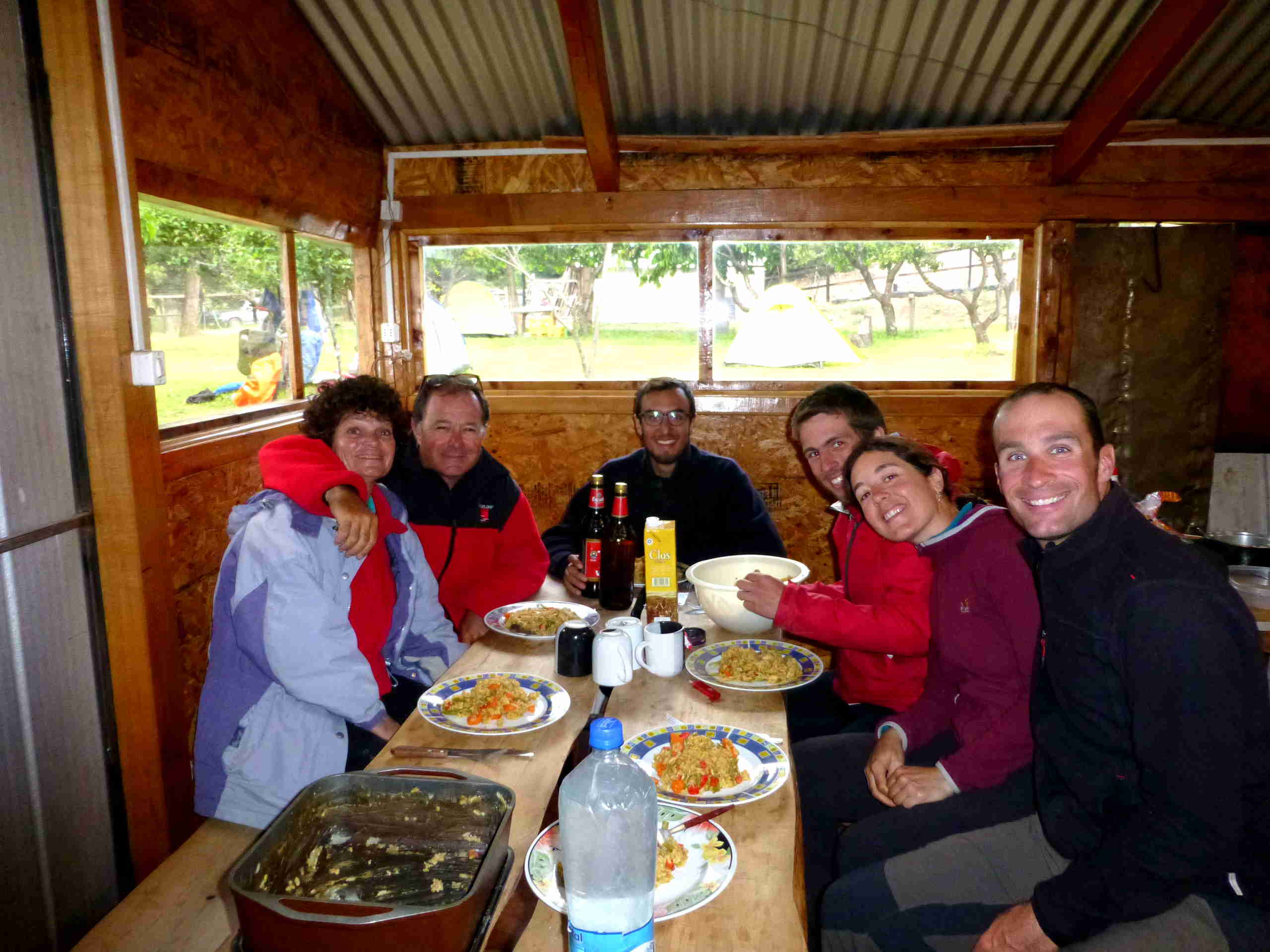 En la siguiente etapa, quizás la menos espectacular de todas, llegamos hacia el campamento Chileno. Esta ruta está más transitada (aún) que el resto porque hay gente que solo hace el último segmento en una excursión de un día desde la hostería Las Torres hasta el campo base de las Torres. Decidimos acampar ahí porque eso nos permitía hacer el ascenso al campo base a la mañana siguiente frescos y sin mochilas, ya que volveríamos a pasar por ahí a la vuelta. Otra gente madrugadora opta por dormir en el campamento Torres porque así pueden ir a ver el amanecer al campo base, so pena de quedarse congelados en plena ascensión… Nosotros decidimos no subir tanto ese día, lo cual fue un acierto porque la mañana siguiente amaneció nublada y desde el campo base ni nosotros ni los madrugadores pudimos más que intuir las famosísimas Torres del Paine, una pena!