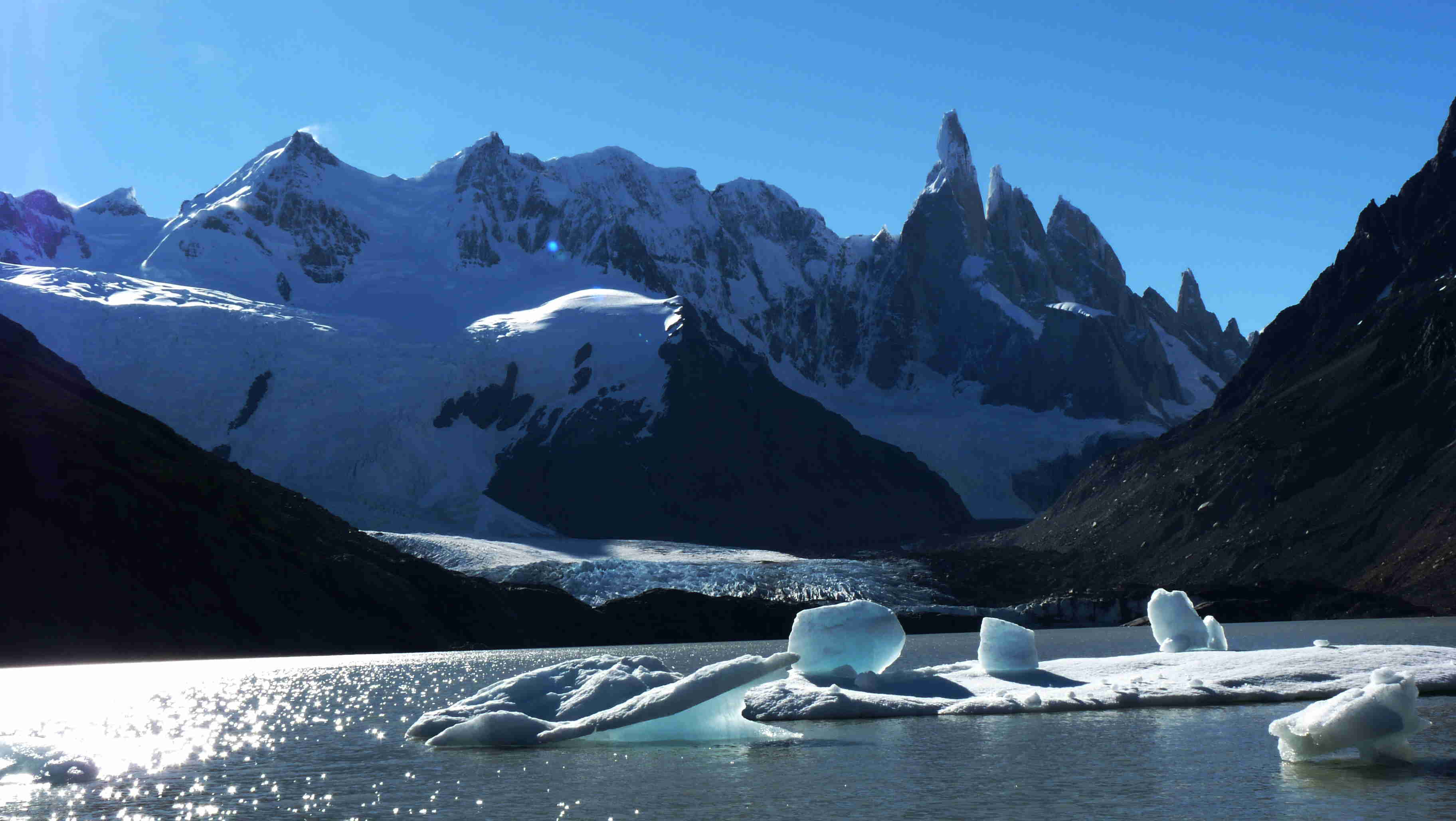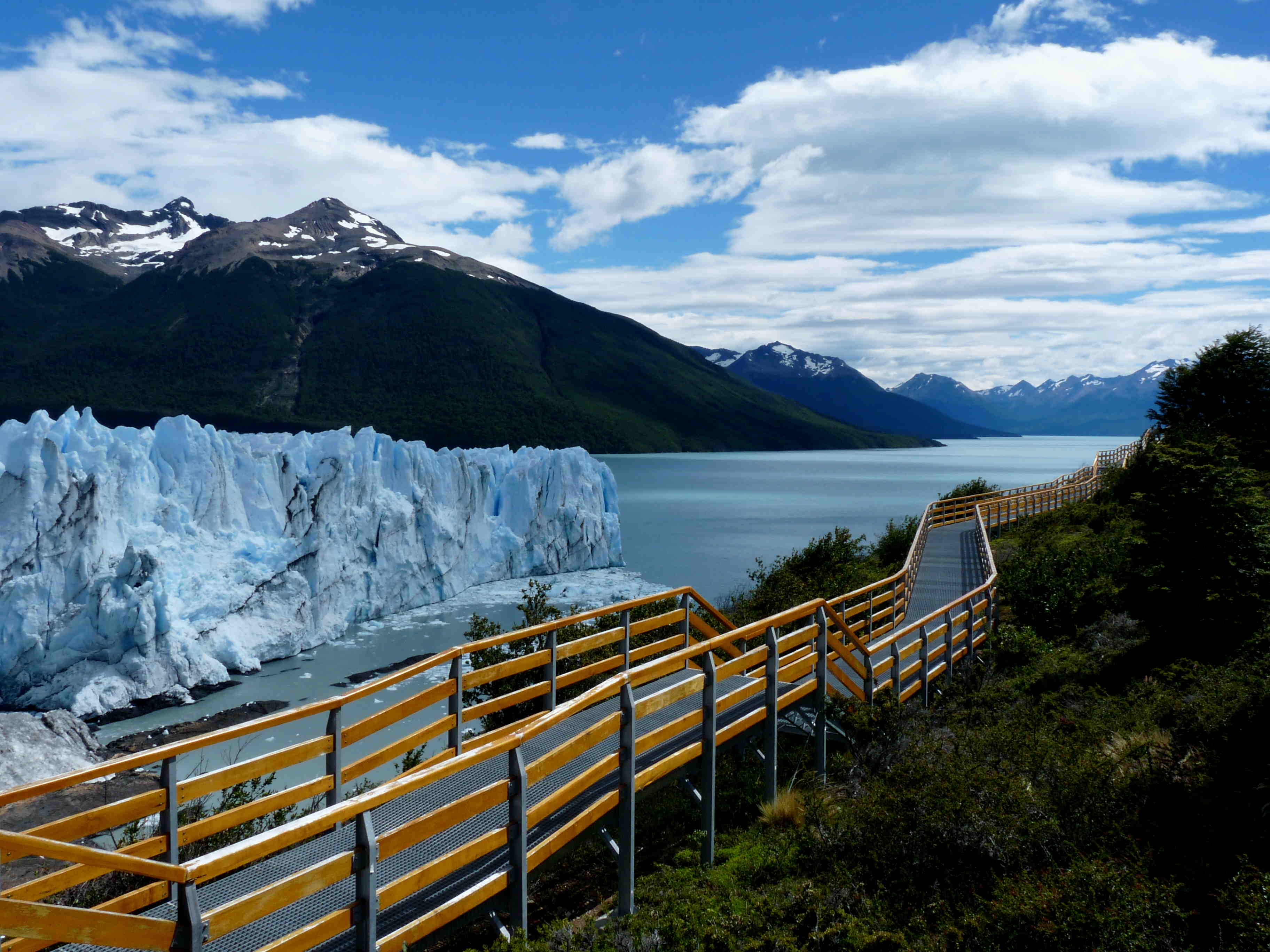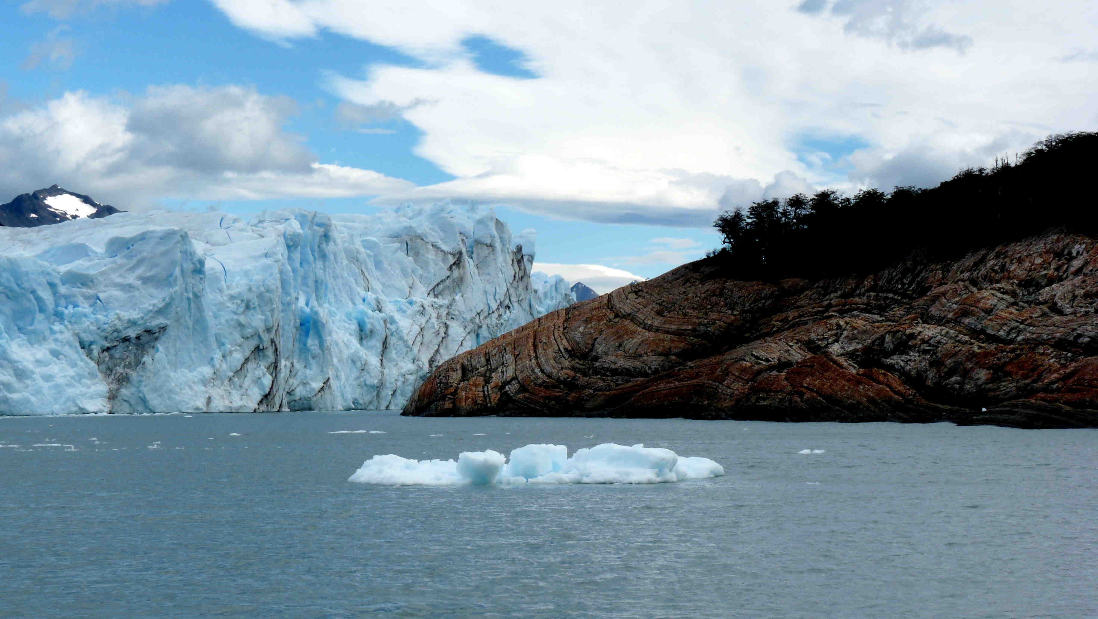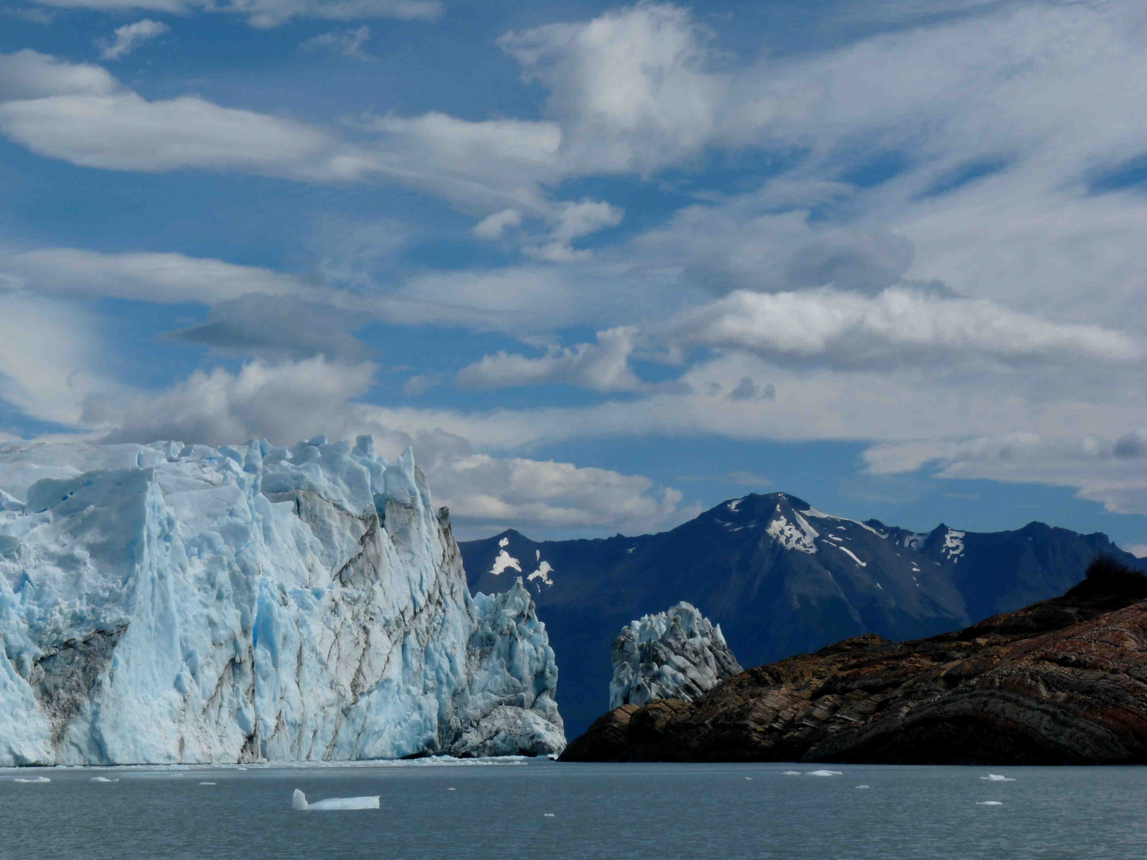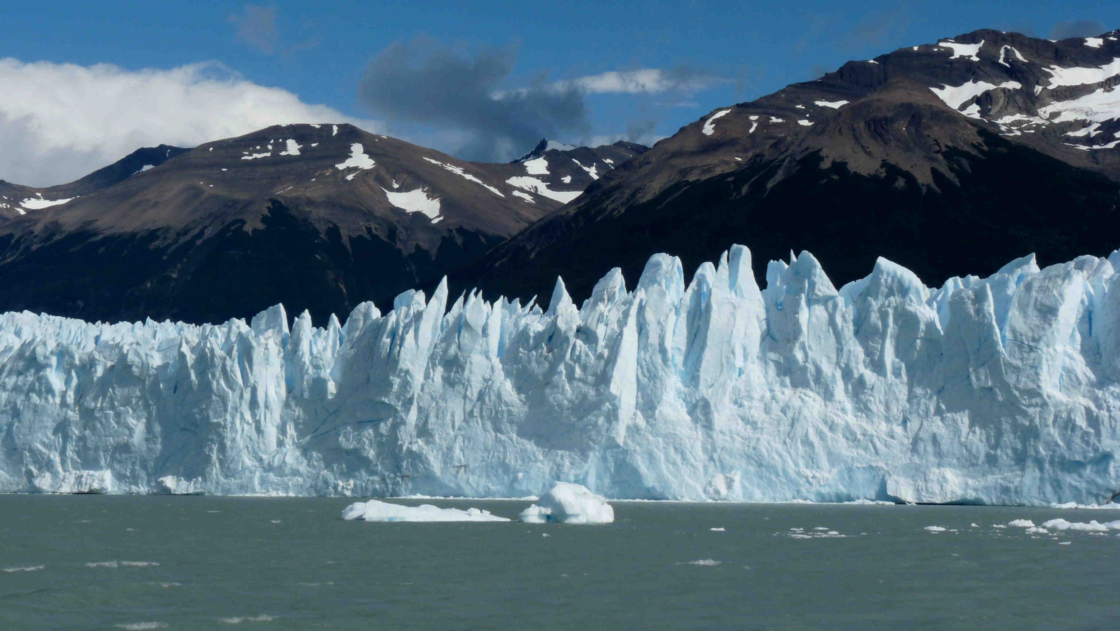 Before leaving we took advantage of being near the Perito Moreno glacier in El Calafate, another mecca which is worth visiting, despite the tourism. The amazing thing about this glacier is that it bucks the general trend of glaciers and it is growing each year. However, its growth is somewhat limited: there comes a moment when the front of the glacier gets to a stretch of shoreline with water to the left and the right. Ice starts to accumulate and then it blocks the natural waterway between the two bodies. This causes a wall of ice to form, damning the other lake, and the water level rises and rises until the day comes when it breaks the ice dam and forms the link again. The water flows out and the process starts all over again. That happens every 4 to 5 years. When we visited, there was still a long way to go, as the current ice had not even come to hit the land. It was a great place to say goodbye to the Patagonia we had spent so long exploring and which we would never forget!