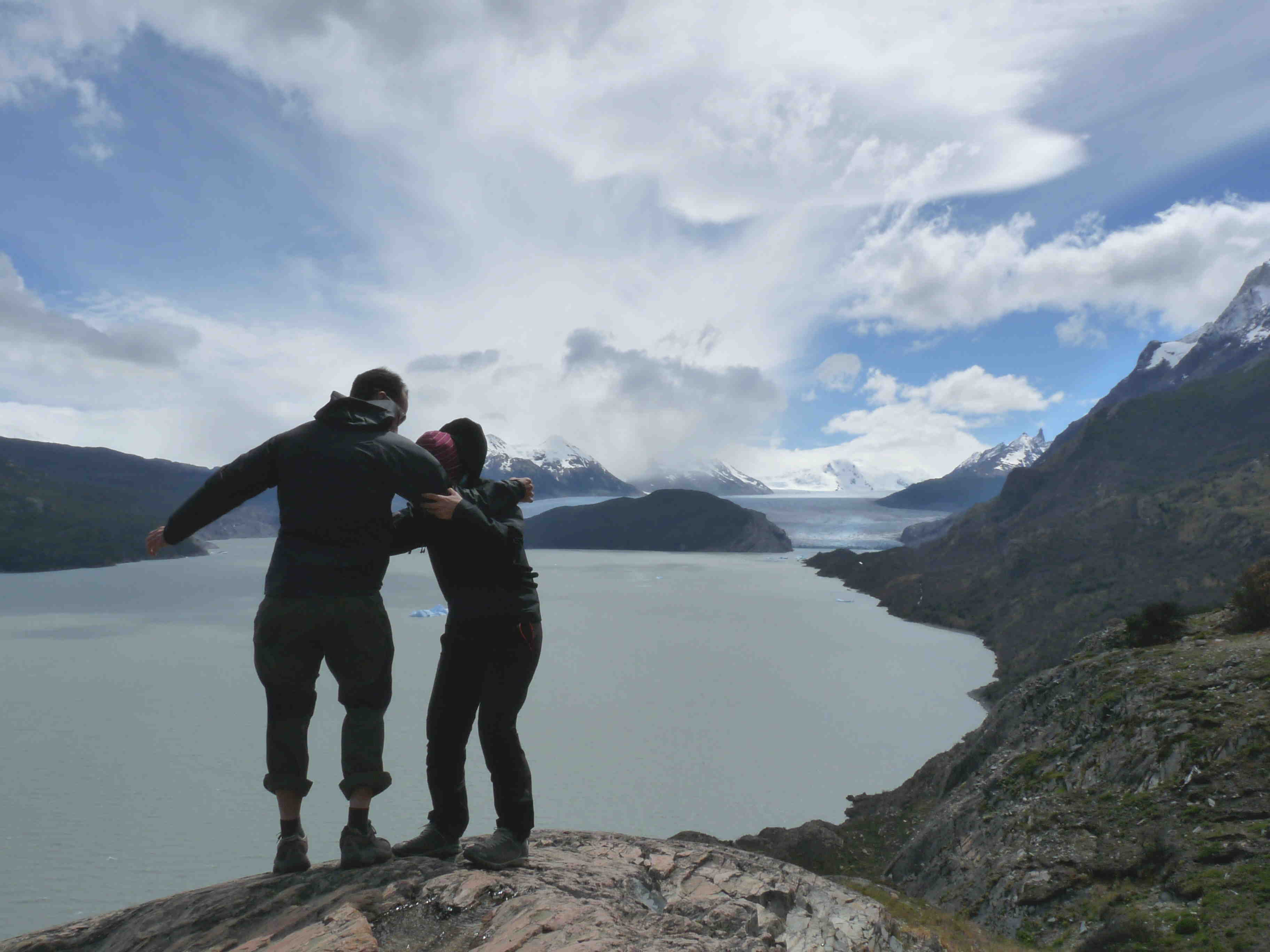 Como nuestro primer día amaneció nublado y no se podían ver las torres nos recomendaron empezar la W desde el Refugio Paine Grande, así que tomamos un barco hacia allí para comenzar nuestra caminata hacia el glaciar y campamento Grey.