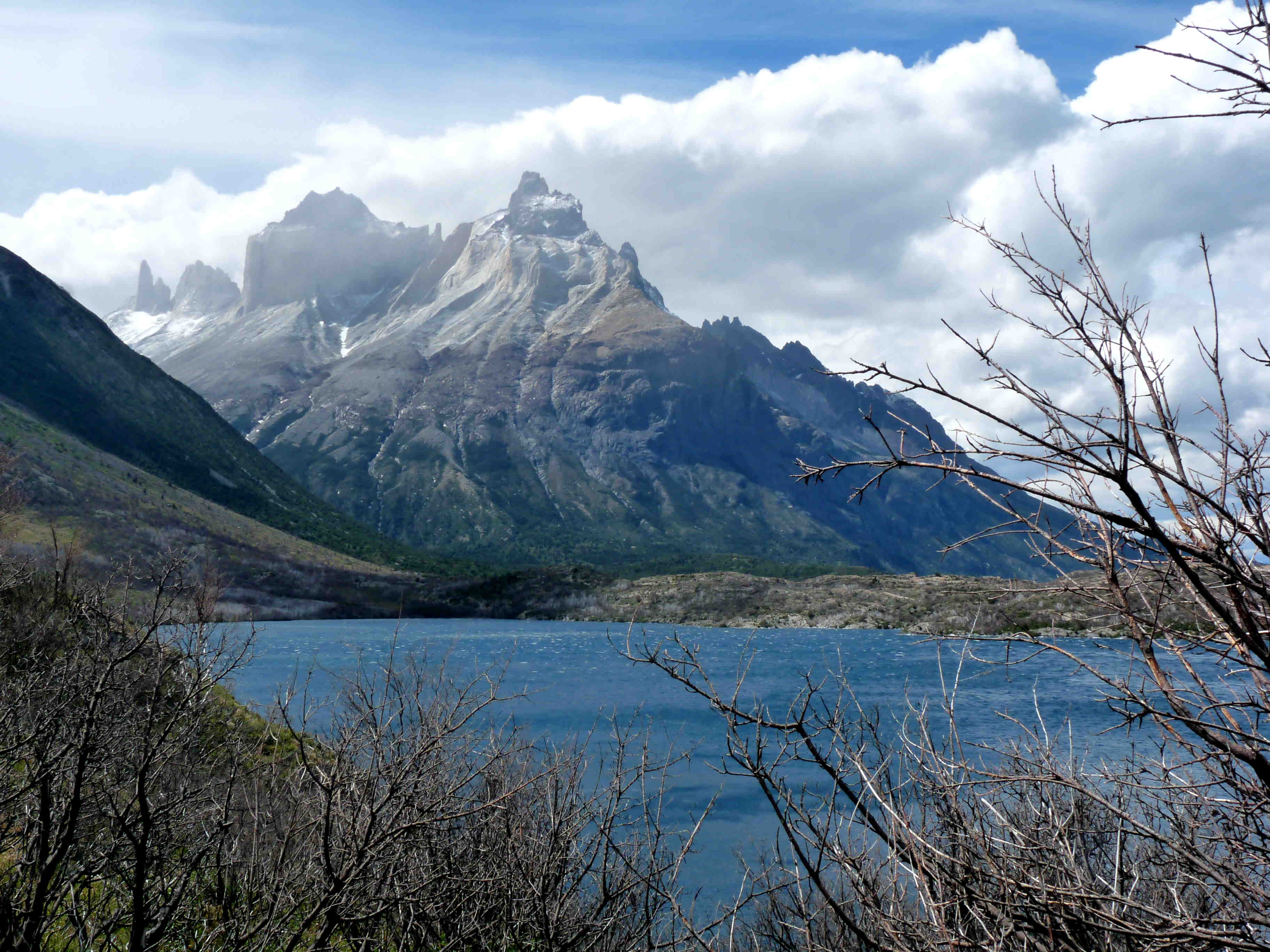 We arranged this in El Calafate on the Argentinian side and found a way to get down to Puerto Natales in Chile (agaaaain we had to cross the border). From there we took a ride up to the park entrance. A series of buses, boats and entry fees and deliberations finally got us to the trailhead. This turned out to be a windy affair (very typical in Southern Patagonia), and the scars of the huge forest fire started by a young Isreali tourist were still very visible. He must have burned down half the park! Needless to say, the Chileans were not impressed.