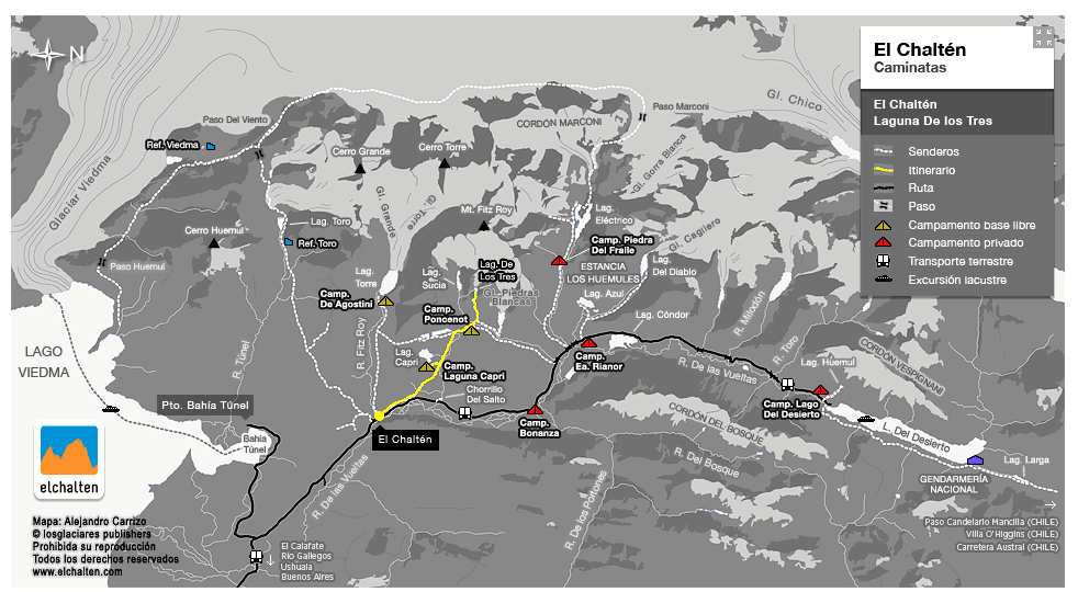 Existen básicamente dos rutas en Torres del Paine, la W y la O (por el recorrido que trazas en el mapa al hacerlas) (Más info en http://www.torres-del-paine.org/). La ruta O es la más larga (9 o 10 días), incluye la W más otro tramo mucho menos transitado que nos han dicho que merece muchísimo la pena. En nuestro caso no nos vimos preparados para cargar víveres para tantos días y optamos por la W.