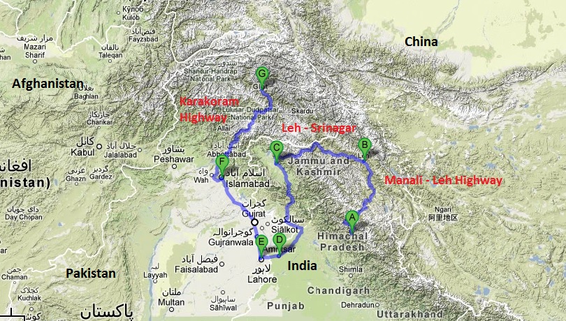 A finales de julio del 2013 tenemos pensado empezar a pedalear en Manali (India). Nuestra idea inicial fue hacer la Ruta de la Seda desde Europa pero eso implicaba llegar a las montañas en pleno Diciembre. Después pensamos en hacer la Ruta de la Seda en sentido opuesto, pero nos perdíamos todas las montañas que queríamos ver. Así que al final nuestro mapa previsto no hace más que “eses”, pero lo importante es el camino! En los meses de Julio, Agosto, Setiembre y Octubre pasaremos de India a Pakistán y después China, confiemos que nuestra piernas y los engorrosos visados nos lo permitan…